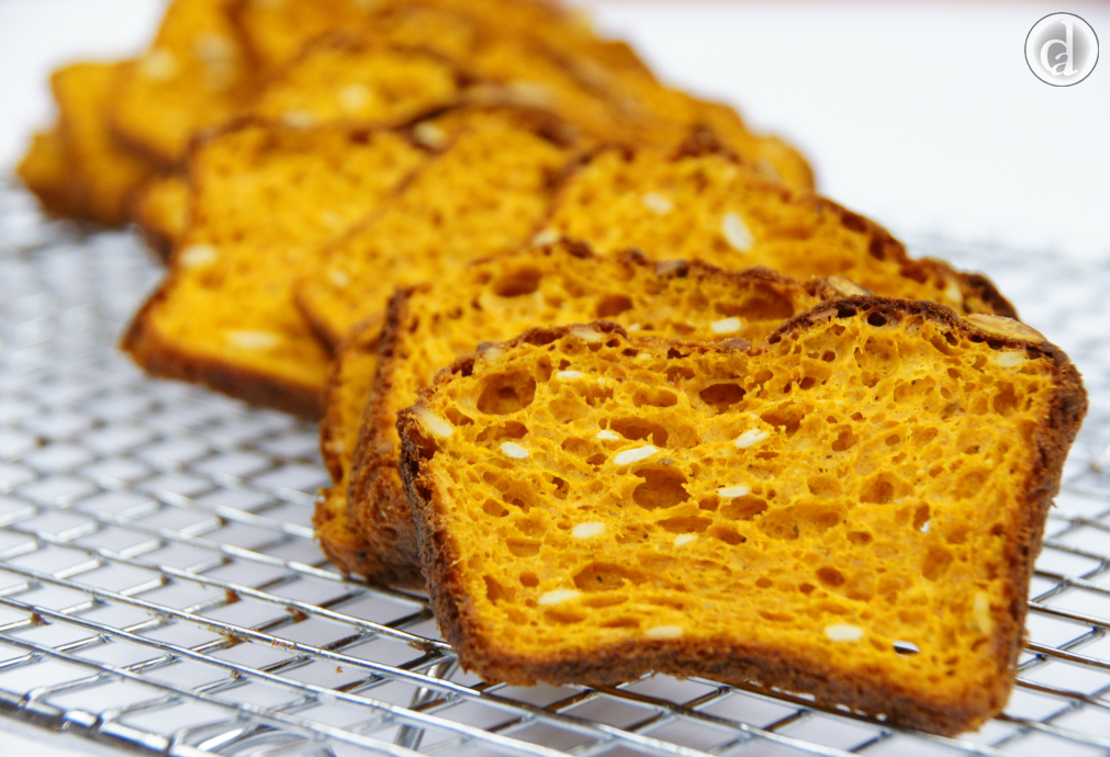 The recipe above is designed for baking in muffin trays not as a loaf. If you want to bake a loaf of the Roasted Pumpkin bread the recipe needs to be modified slightly.