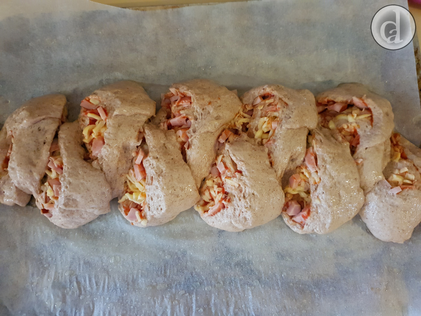 Two things - Firstly, it was coming up to lunchtime & the family was getting hungry & secondly, I've always wanted to make gluten free wheat stalk bread (epi bread). In an attempt to satisfy both I decided to make some pizza scrolls but cut them the way epi bread is made.